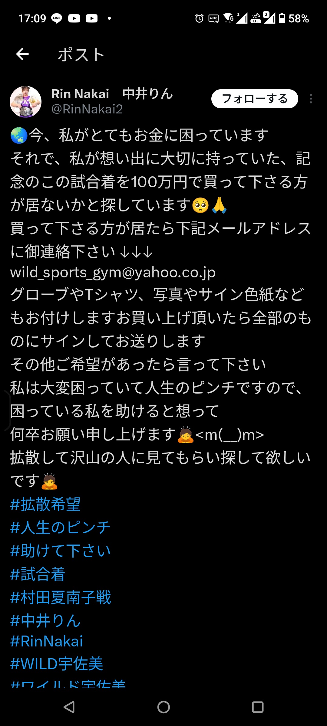 「IGNITE Fights」は16日までにXを更新。「日本メディアから多数のお問い合わせをいただいております。MMAという素晴らしい分野とサポーターの皆様とご協力できることを楽しみにしておりましたが、残念ながら宇佐美監督と中井りん氏のビジネス慣行についてはこれ以上対応できません。事実関係を明確にし、日本への敬意を示すためにこの声明を発表します」と文書を投稿した。